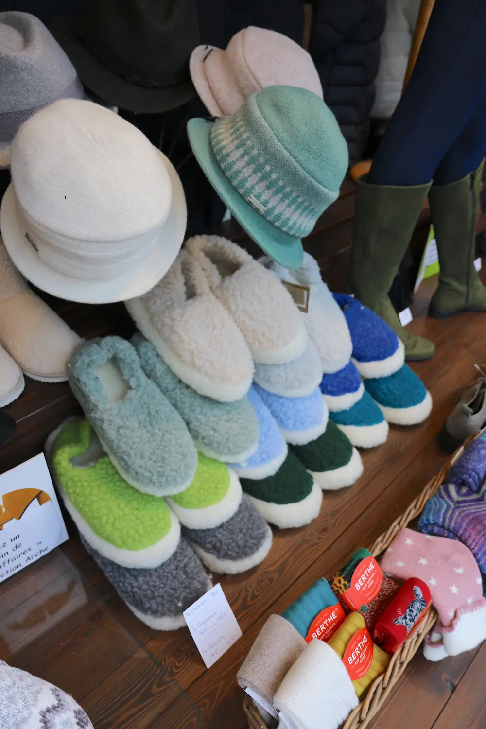 Vous découvrirez nos CHAUSSURES, MAROQUINERIE, VETEMENTS DE PLUIE, MANTEAUX, TRICOTS MAIN et ACCESSOIRES (foulards, écharpes, gants, mitaines, chaussettes, collants, leggings, guêtres, chapeaux, bonnets, chaussons etc etc...).