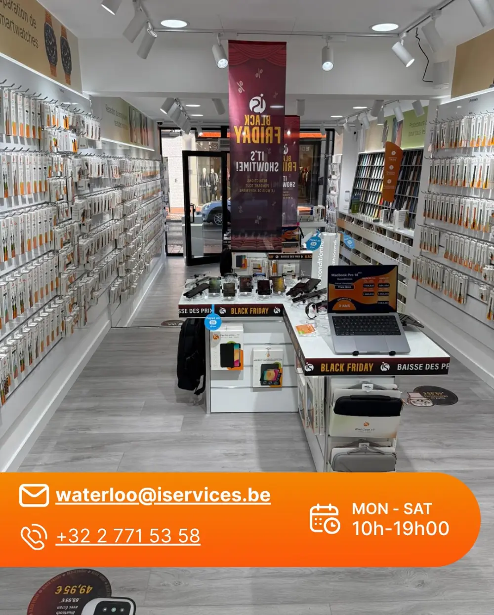 Chez iServices, nous ne faisons pas que réparer : nous proposons également un large choix d’accessoires technologiques, incluant câbles, écouteurs sans fil, batteries externes, Powerbanks, coques, find tags, smartwatches et bien plus. Nous assurons aussi l’installation de protections d’écran pour vos smartphones.