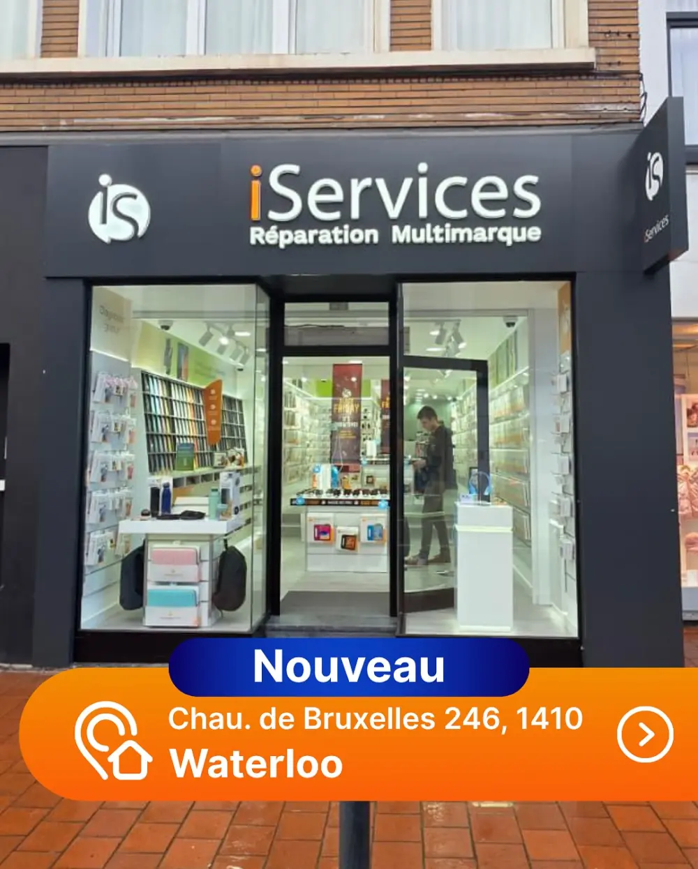iServices Waterloo, votre spécialiste pour la réparation de smartphones, tablettes et ordinateurs multimarques. Que ce soit pour un iPhone, Samsung, Huawei, Xiaomi ou iPad, nos techniciens remettent vos appareils en état en seulement 30 minutes, sans rendez-vous nécessaire ! Nous prenons en charge tous types de dommages : écrans fissurés, batteries défectueuses, ports ou boutons endommagés. Chaque intervention est accompagnée d’un diagnostic gratuit et d’une garantie jusqu’à 2 ans, pour votre tranquillité.