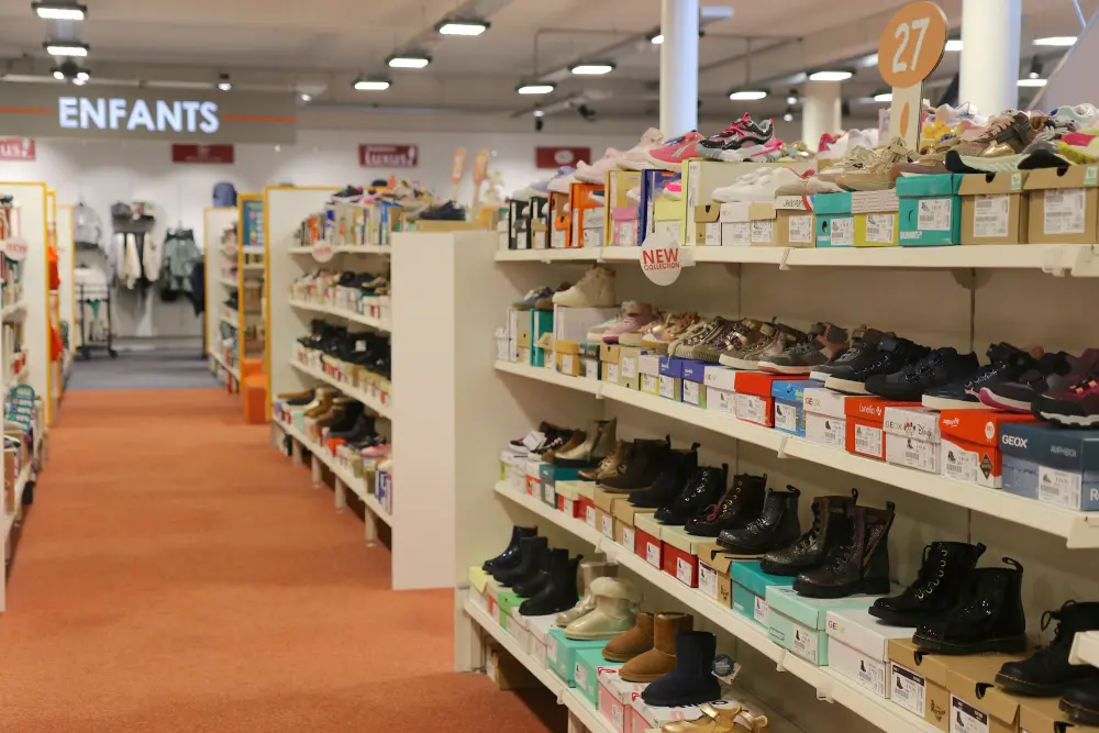 Chaussures Luxus Waterloo, c’est un magasin de 1500m² sur deux étages avec un coin jeux dédié aux enfants pour une meilleure expérience shopping.